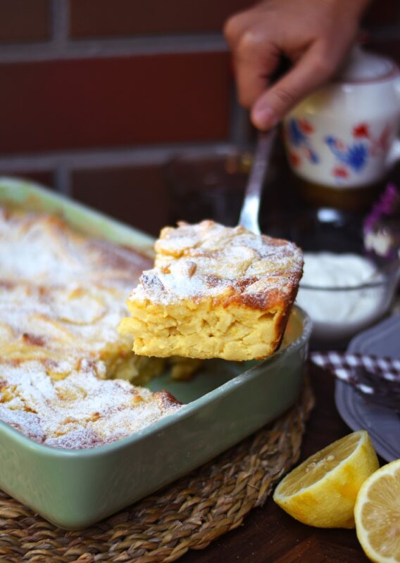 Azért is nehéz felismerni benne a tésztametéltet, mert ezután viszont egy vajas, tejfölös tojáshabos krémmel sütőben összesütjük, és a folyamat végén a tészta vastag szálai már kevésbé felismerhetőek. Egy egységes, szaftos édes sült tésztát fogunk kapni.