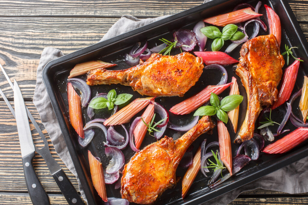 Hússal, zöldséggel sült rebarbara / Fotó: ALLEKO, Getty Images
