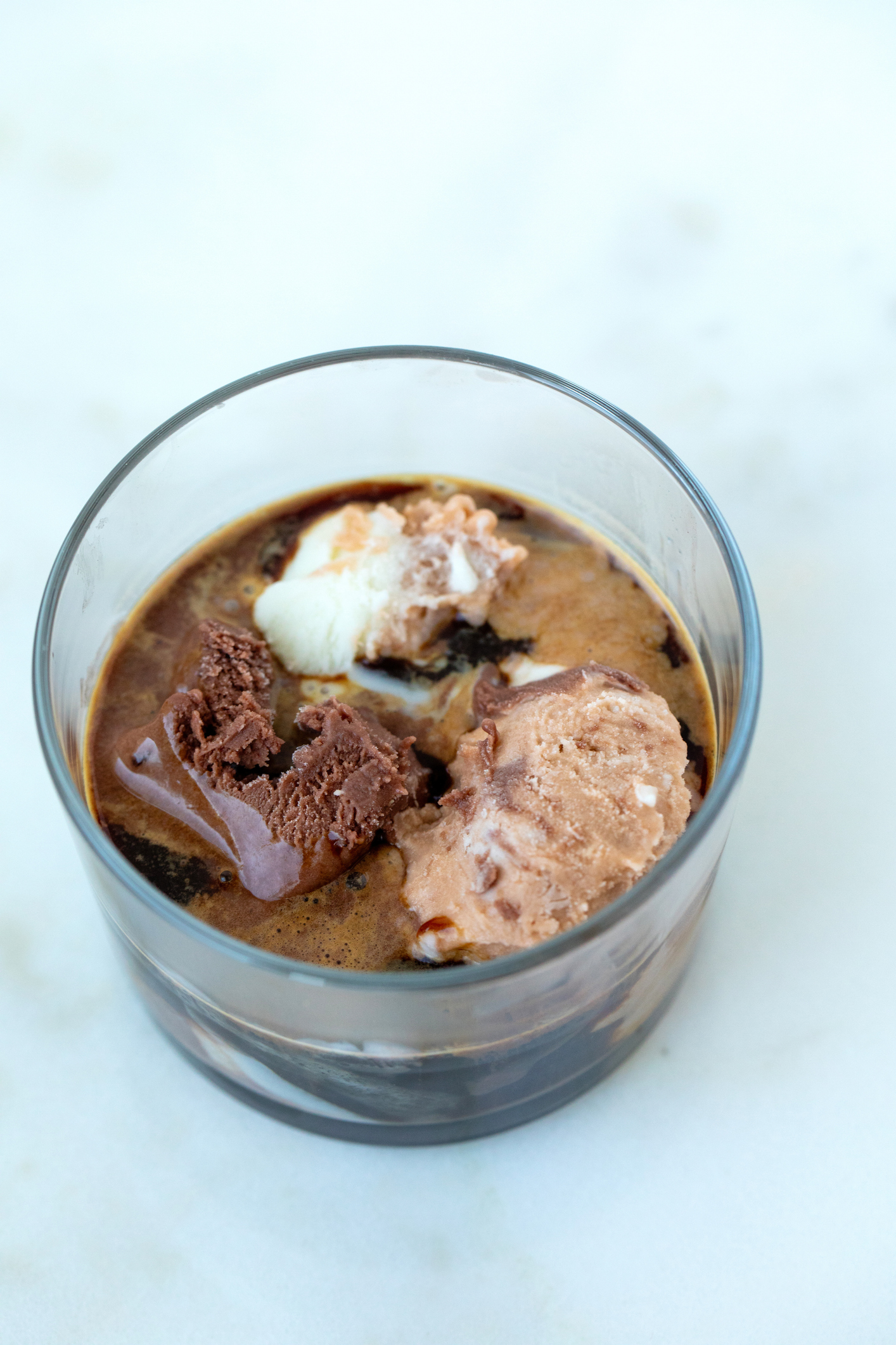 Mondhatni egy faék egyszerűségű kompozíció, amit egy erősre és rövidre fogott feketekávé és egy vagy több gombóc fagylalt alkot. Ez utóbbi hangsúlyozottan krémfagylalt (gelato), ami eredetileg lehet vanília vagy fior di latte. A fior di latte egy olasz fagylaltspecialitás, az íze viszonylag semleges, tejszínszerű, ennek megfelelően gazdag és krémes, igen kellemes. Az eredeti firo di latte a mozzarellához hasonló friss, lágy, gyúrt sajt, pizzafeltétként is jól ismert. Ugyanezen a néven egy szuperkrémes tejszínfagylaltot nyalhatunk – az affogato al caffè esetében pedig választhatunk, hogy elkortyoljuk vagy kanalazgatjuk-e.