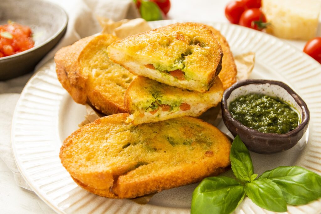 Mozzarellás-pesztós töltött bundás kenyér