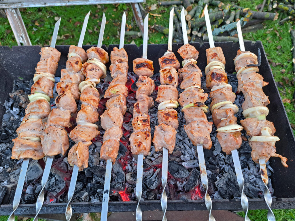 Érdekes volt először látni a modernizált saslik változatokat, mert a legtöbbünknékl csak hús, szalonna és közönséges vöröshagyma került a nyársakra. Nem éppen gyerek kezébe való a szúrós fémnyárs, de szülői felügyelet mellett nagy kaland volt segíteni a nyársazásban. Néhány mozdulat, és mi is kiskukták lehettünk.