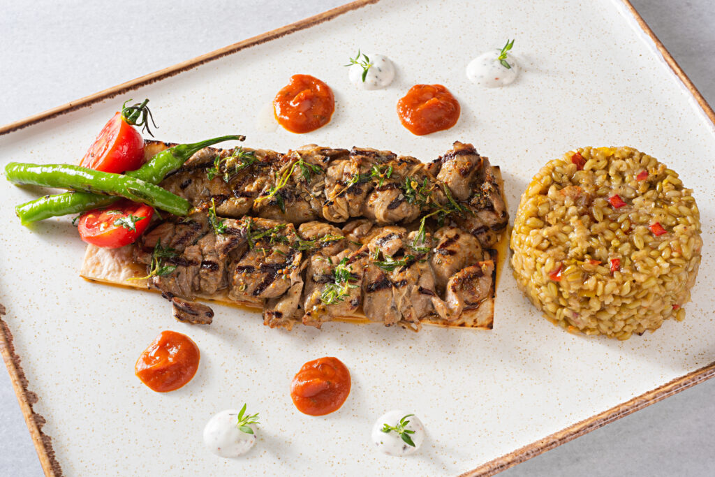 Elegáns isztambuli étteremben tálalt sish kebab bulgurral / Fotó: BURCU ATALAY TANKUT, Getty Images