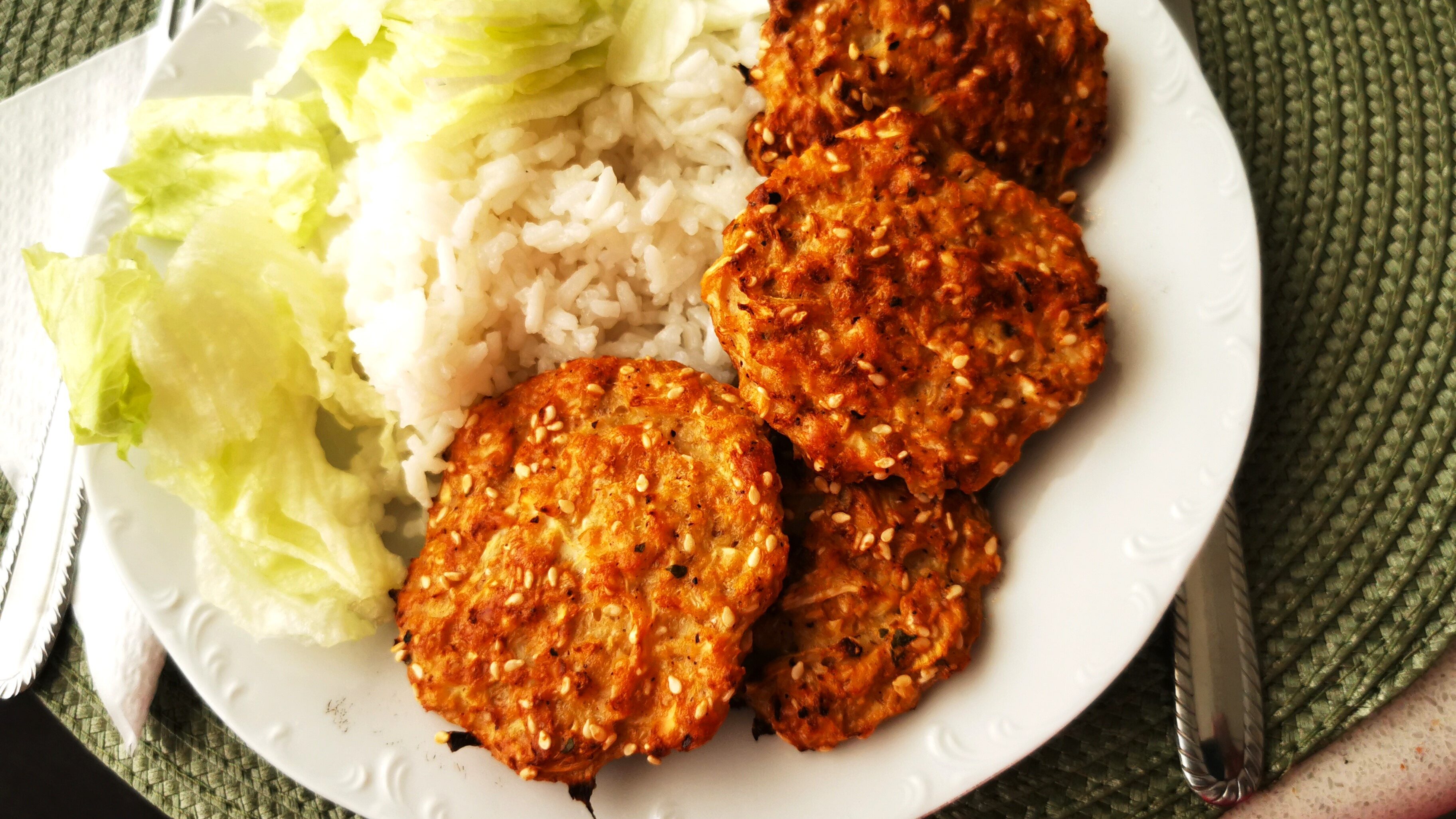 - Beletesszük a többi hozzávalót az apróra vágott petrezselyemmel együtt. Jól összekeverjük, majd egy sütőpapírral kibélelt sütőlemezre kanalazunk 12 halmot. A kezünkkel nagyjából korong formájúra egyengetjük, és 180 fokon, mintegy 30 perc alatt megsütjük.