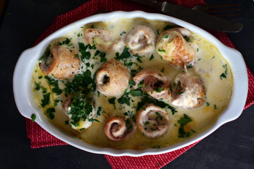 Sonkás-sajtos pulykatekercs, jó szaftosan