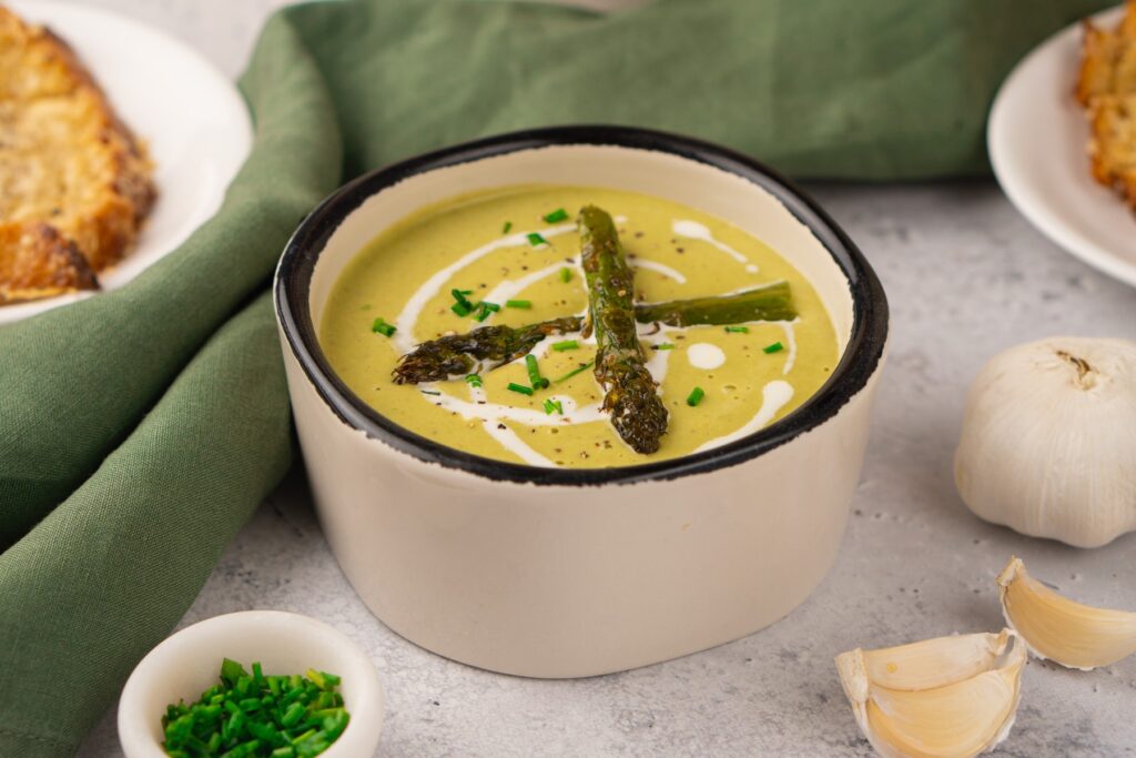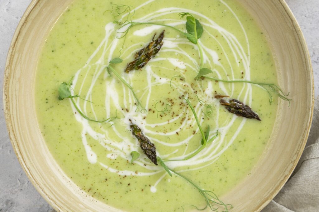 A zöldséges spárgakrémleves annyiban több és jobb, mint a sima spárgakrémlevesek, hogy burgonya, újhagyma és cukkini is gazdagítja. A sok-sok klorofillt tartalmazó, zöld színű zöldségektől üde színű, és csupa tavasz. A Nosalty receptje tejmentes margarint és növényi tejszínt ír, de ezeket ízlésünk szerint kiválthatjuk akár vajjal és állati eredetű, zsíros tejszínnel is. Növényi alapanyagokból is finom, de garantáljuk, hogy ez utóbbi hozzávalókkal még teltebb ízű lesz!