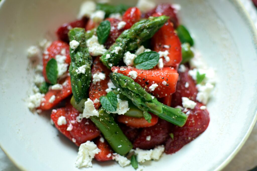 Ez a tízperces eper-spárga saláta kész tavaszi őrület. Egy tányérra kerül benne az eper, a zöldspárga, a méz, citromlé, citromhéj, amihez olyan sós ételekből ismert hozzávalók kerülnek, mint a feketebors és a fetasajt. Legyünk bátrak, és merjük ötvözni az édes és sós, gyümölcsös és zöldséges hozzávalókat. Igazi tavaszi bezsongás a magyar (avagy olasz trikolór) színeiben. Ugye, milyen egyszerűen is készülhet egy színes és bódító fogás?