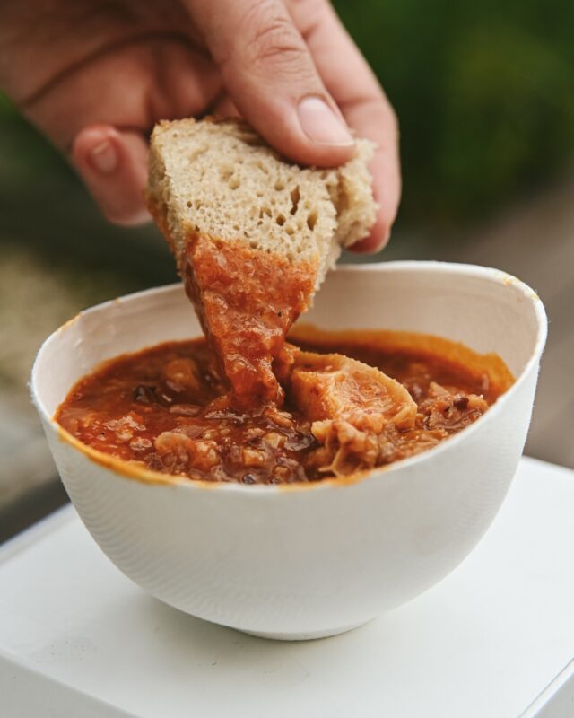 A Monokini Kantin még meg sem nyílt, de már most sokan kíváncsiak rá. Két pesti sikerhely, a tapasoknak szentelt Padron és a szintén spanyol ízekre fókuszáló Arquitecto Pitpit gazdái nyitnak Budán új helyet. A Millenáristól nem is messze, néhány sarokra, a Varsányi Irén utcában jelentkezik majd a vicces nevű Monikini. Elöljáróban pedig a fesztiválon debütálnak, például ezzel a madridi pacallal. Még mielőtt azt gondolnánk, hogy a szaftos pacal magyar sajátosság! Persze, a madridi megfejtés nem úgy szaftos, mint a mi magyarunk… könnyedebb, mediterránosabb, és sajnálni fogjuk, hogy csak ekkora a tálka.