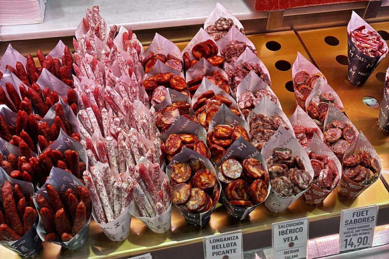 Aztán vannak az apró szendvicsek, csak pár falatosak, de mindent rájuk lehet pakolni, a lazactól az ibériai sonkáig (jamón ibérico). És ha már sonka: nos, az egy külön műfaj itt. Olcsónak éppen nem mondanám, de az íze és az állaga valami elképesztően finom. Mindig ott szeletelik a vendégek szeme láttára, van hozzá egy fém állvány, amibe beszorítják a patát, a sonka részét feltámasztják és mesteri mozdulatokkal, gyönyörű, vékony szeleteket vágnak. Nem bízzák a véletlenre, egy-egy vendéglátóhelyen több ilyen egész sonka is lóg a plafonról, amire szigorúan harisnyát húznak, nehogy rászálljon a légy.