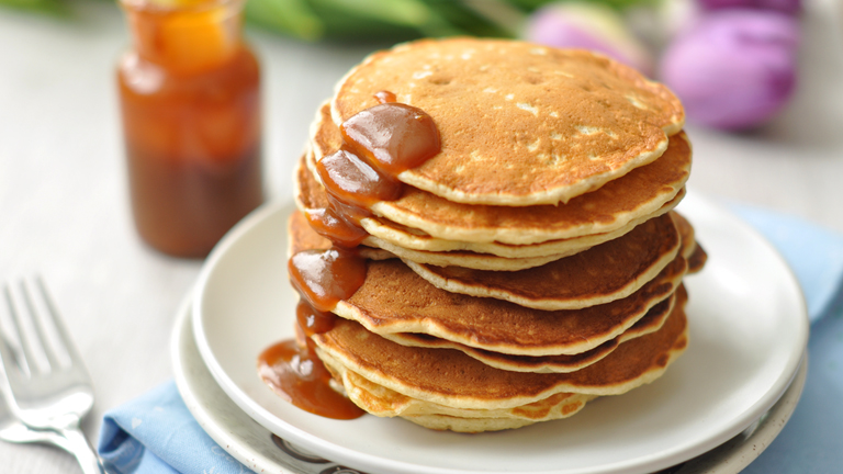 Nagyon egyszerű elkészíteni, szépen tálalható és millió módon variálható. A klasszikus amerikai palacsintát juharsziruppal és ropogósra sütött baconnel kínálják, de nálunk inkább az édes verziók népszerűek. A kókuszos, almás, kakaós és mandulás amerikai palacsinta is nagyon finom, de talán ez a banános a legeslegfinomabb. Különösen karamellszósszal, amit érdemes előző nap elkészíteni, így reggel csak a palacsintát kell kisütni, és már kész is az isteni reggeli.