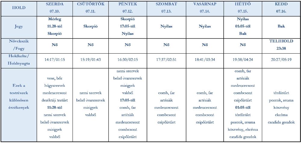 SZERDA – július 10.: Nagyjából délben lép a Skorpióba a Hold, innentől pedig merevségre hajlamosít – érzelmekben és elvekben egyaránt. Ha megakarod őrizni a rugalmasságodat és a hajlékonyságodat, igyál a szokottnál is több folyadékot szerdán. Lehetőség szerint tiszta vizet vagy ízesítetlen gyógyteát.