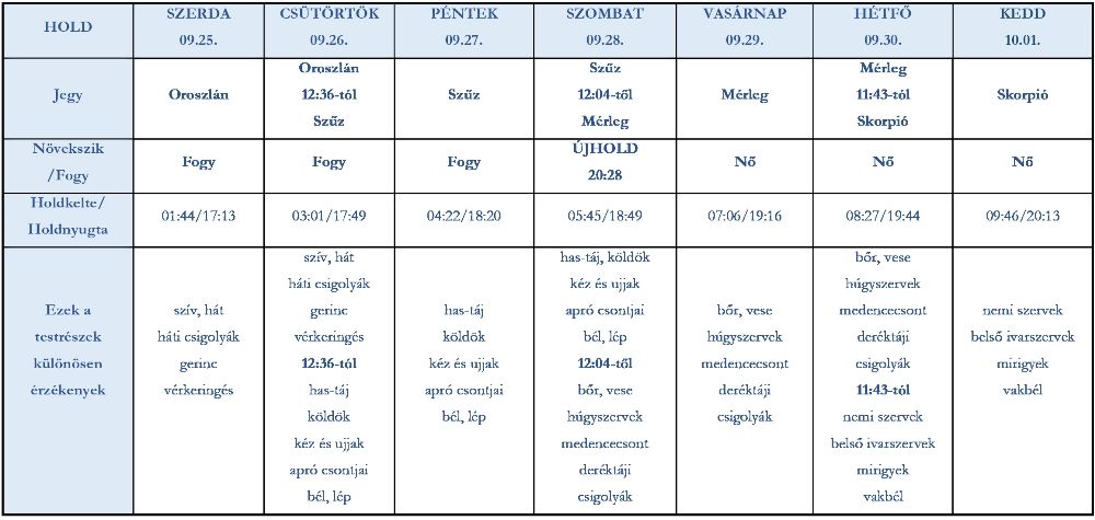 PÉNTEK – szeptember 27.: A Szűz Hold segít neked, hogy komolyan vedd az apró részleteket. De figyelj arra is, hogy közben ne válj szőrszálhasogatóvá. A Szűz fogyó Hold a méregtelenítésben óriási előny lehet. Az újhold előtti napon ez a lehető leghatékonyabb. Fordítsd a javadra, nem fogod megbánni.