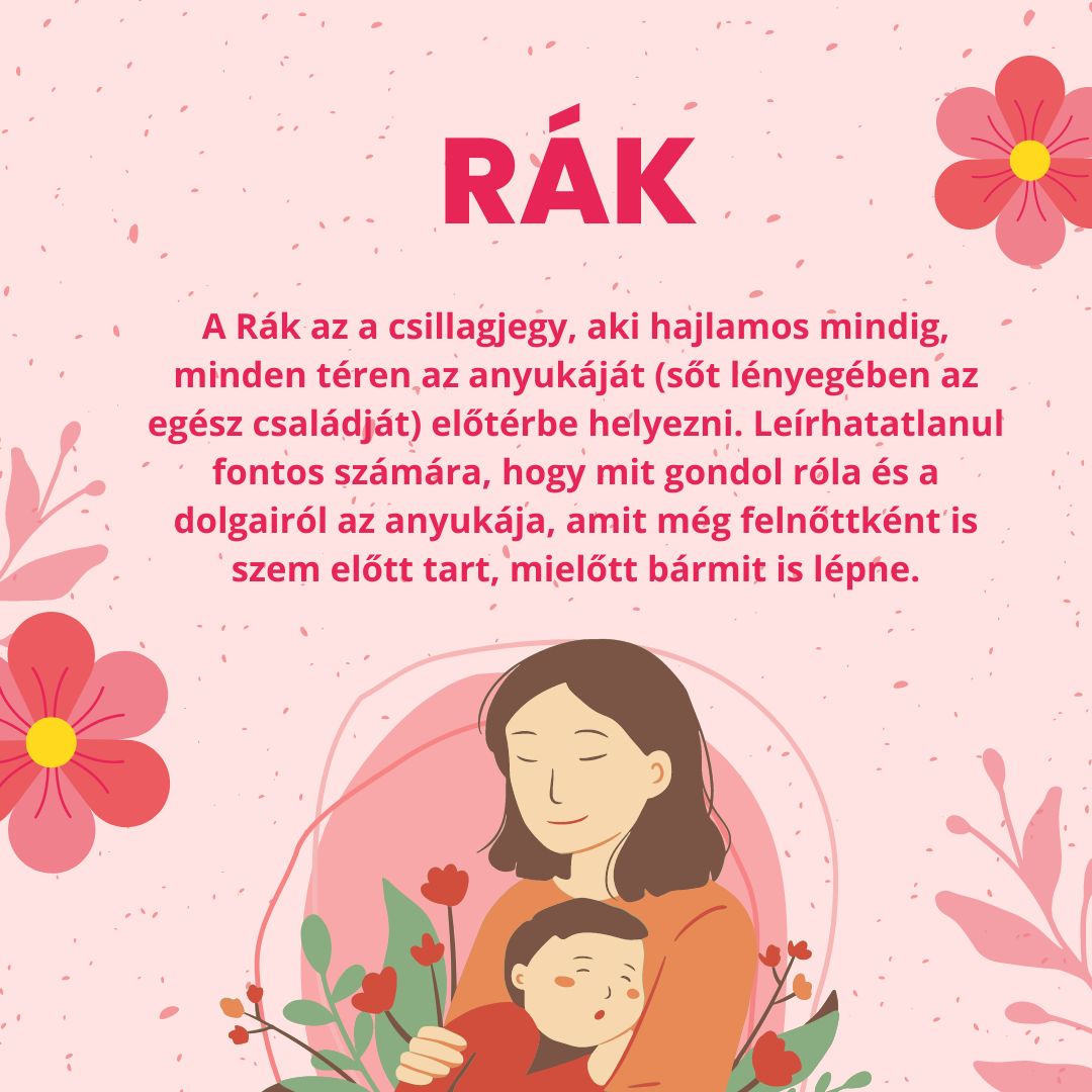 Szinte mindegy, hogy fiú-e vagy lány az alábbi csillagjegyek képviselője, egészen biztos, hogy az áltagosnál nagyobb a valószínűsége, hogy olyan szoros kötődés szövődik közte és az anyukája között, amit sokan megirigyelhetnének.