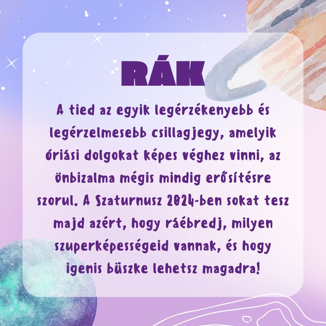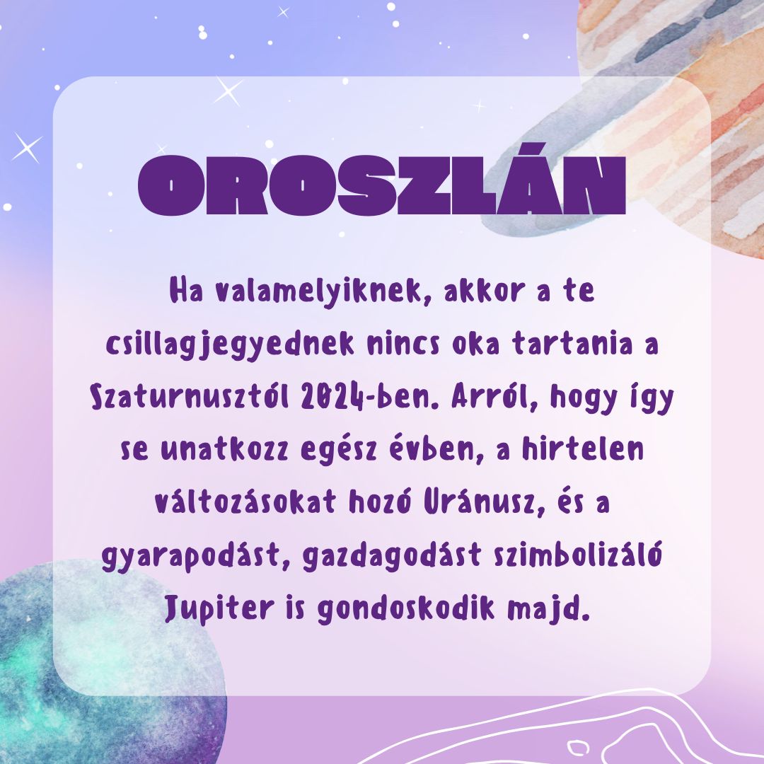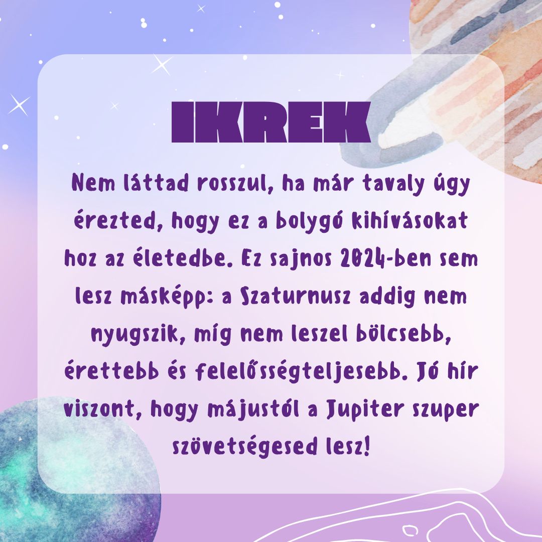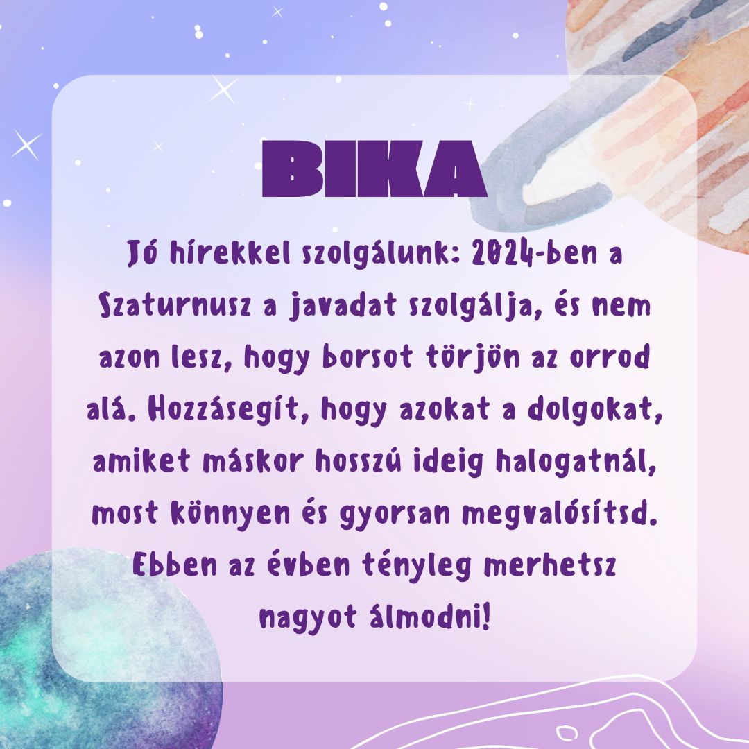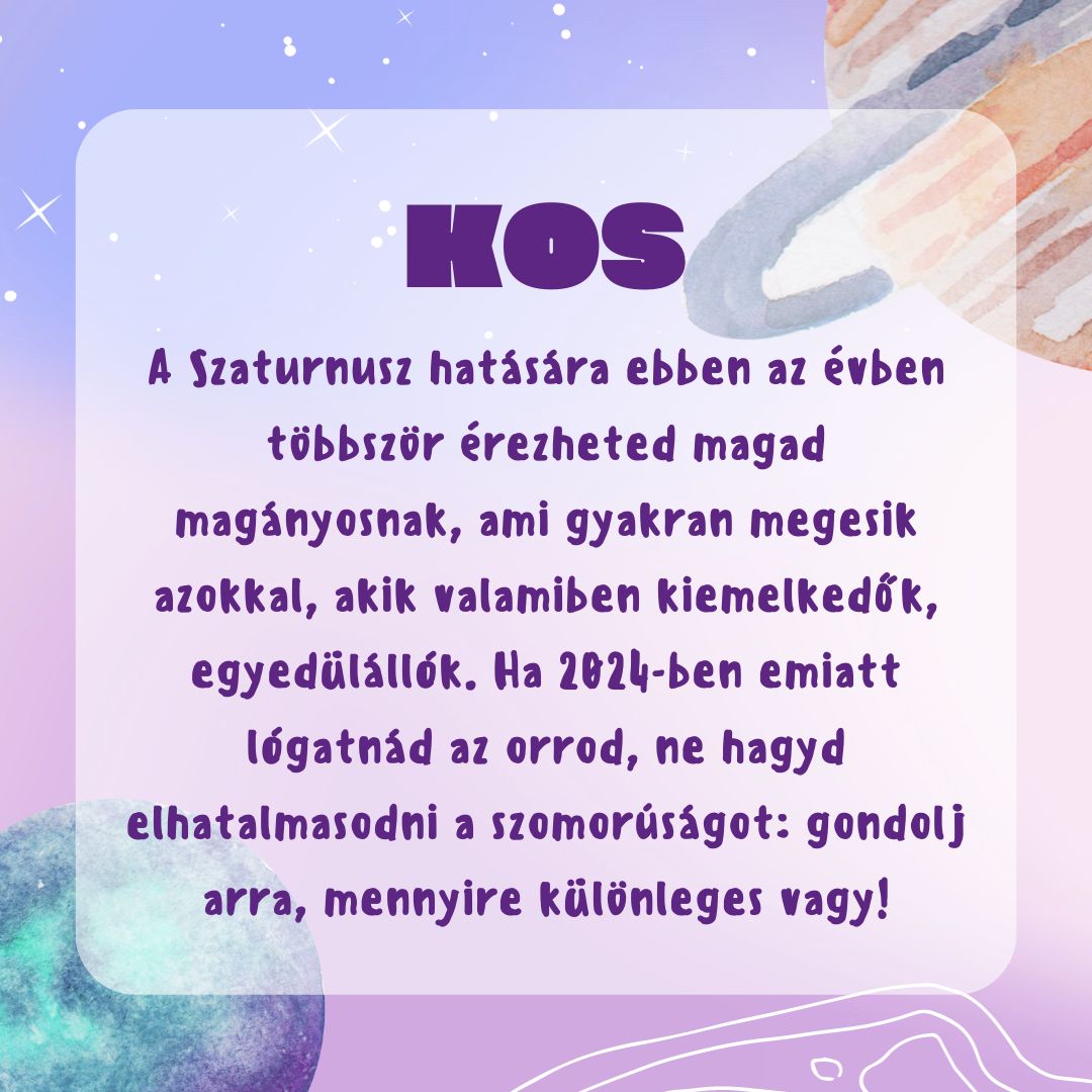A Szaturnusz egy lassú mozgású, erőteljes hatású bolygó, ami senkivel sem viccel: minél inkább homokba dugod a fejed, annál határozottabban próbálja értésedre adni, hogy mit kellene végre meglátod. Ennek fényében jobb tudni, mit akar tőled 2024-ben, és mindenképp érdemes szót fogadni neki!