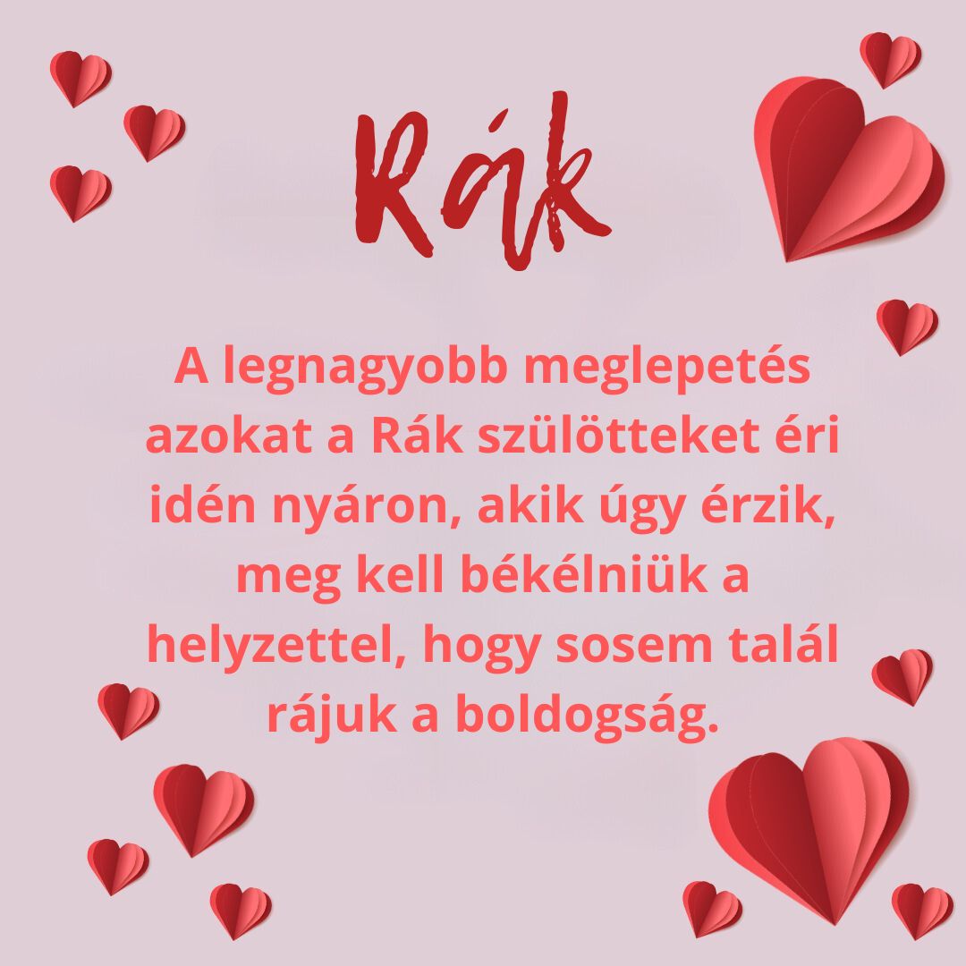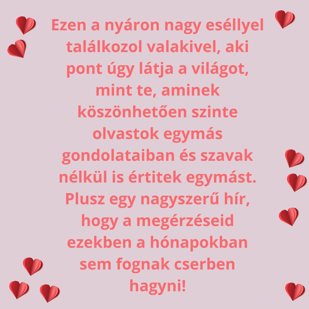 A lezárás persze nem mindig fájdalommentes, a fejlődéshez és előrelépéshez azonban elengedhetetlen. Gondolj erre, amikor úgy érzed, hogy megoldhatatlan nehézséggel kerültél szembe és ne feledd, hogy a levont tanulságok a jövőben nagy hasznodra válhatnak! Mutatjuk, ezen a nyáron kik lesznek a legszerencsésebbek a szerelemben!