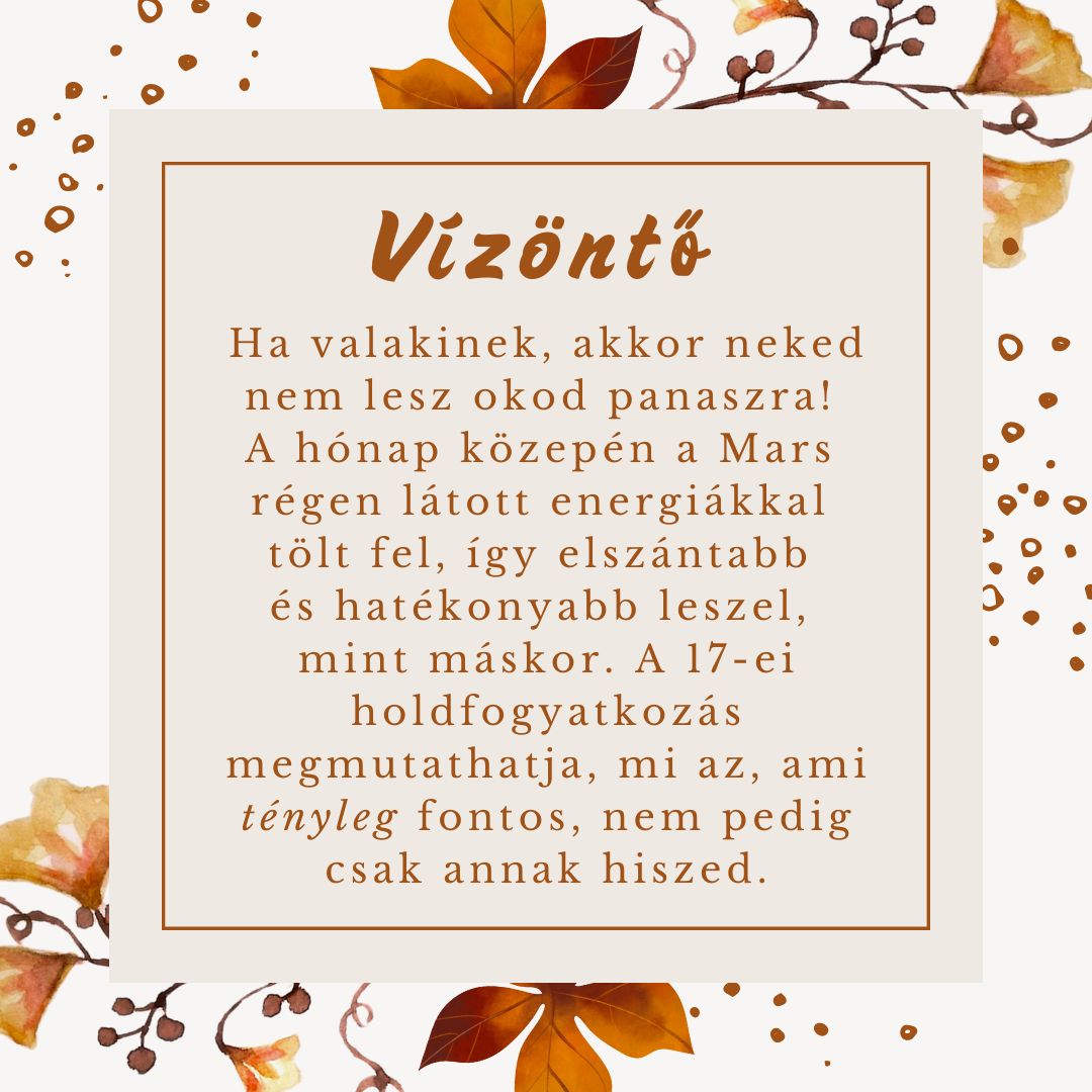 A hónap második felében, egész pontosan 17-én ugyanakkor egy intenzív erőkkel ható holdfogyatkozásra is sor kerül. Ez felnyithatja azok szemét, akik eddig túl idealisztikus képet festettek valakiről vagy valamiről, és nem látták meg a fától az erdőt.