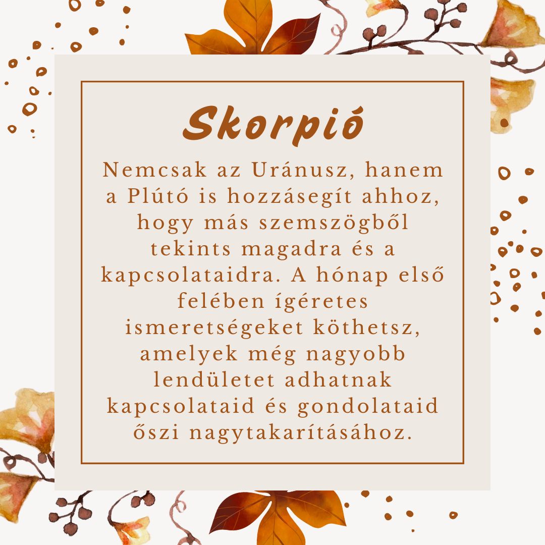 Tökéletes lehet ez a hónap arra is, hogy ha elsőre fájdalmasnak tűnik is, rászánd magad a változtatásra, a mérgező emberek és a visszahúzó környezet hátrahagyására. Igazi újjászületés-élményben lehet részed, ha kellően elszánt és kitartó vagy!