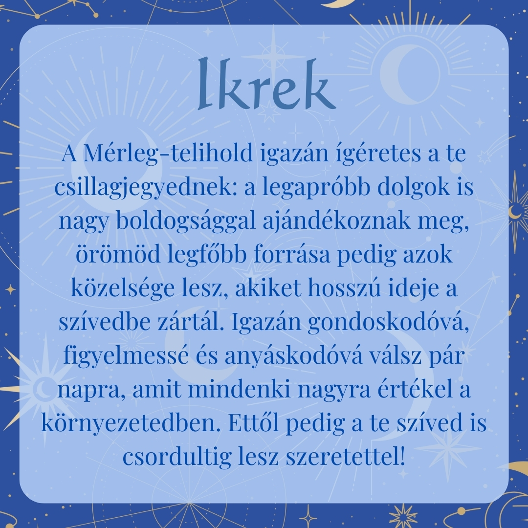 Amikor a külső-belső harmóniára törekvő, és diplomatikusságáról híres Mérleg jegy ad otthont a teliholdnak, ami hozzájárulhat ahhoz, hogy egyensúlyt teremts a kapcsolataidban és kibogozd az összekuszálódott szálakat.