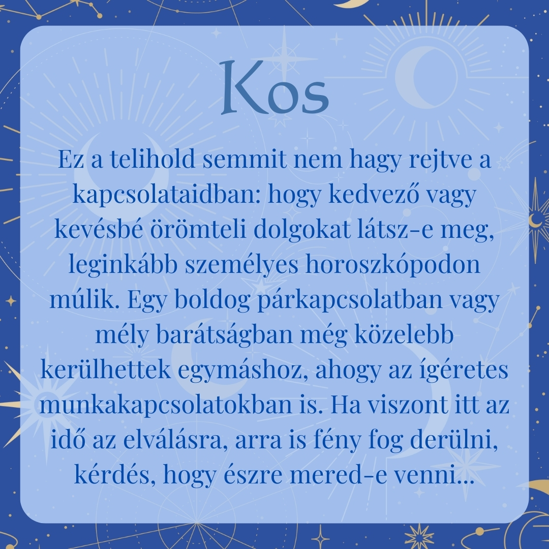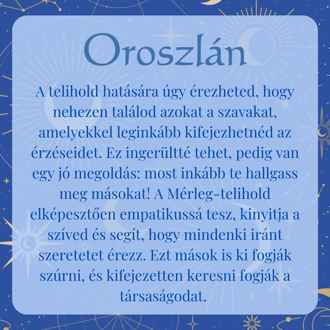 Mivel a telihold a holdciklus utolsó állomása, általánosságban elmondható, hogy keresve sem találhatnál jobb alkalmat az összegzésre, a lezárásra és az új célok kitűzésére, de a Mérlegben kiteljesedő hold egyéb fontos változást is hoz a mindennapokba.