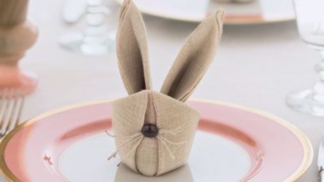 Ha úgy érzed, nem került elég cukiság a húsvéti asztalra, még mindig feldobhatod egy kedves szalvétatrükkel! Ilyen cuki húsvéti nyuszit például egészen egyszerűen hajtogathatsz textilszalvétából.