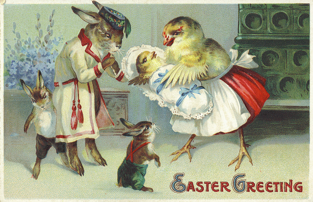 A húsvéti képeslapok küldözgetése a 19. század végén, a 20. század elején vált szokássá. Az ünnep legnépszerűbb jelképei, és így a képeslapok leggyakoribb szereplői már akkor is a nyulak és a csibék voltak, rajtuk kívül pedig gyakran szerepeltek a képeken kisgyerekek és fiatal nők, és természetesen tojások is. Mindez – mai szemmel nézve – olykor egészen bizarr megközelítésben. Az alábbi galériában a múlt század első évtizedeiből származó, sajátos hangulatú képeslapokat nézegethetsz.