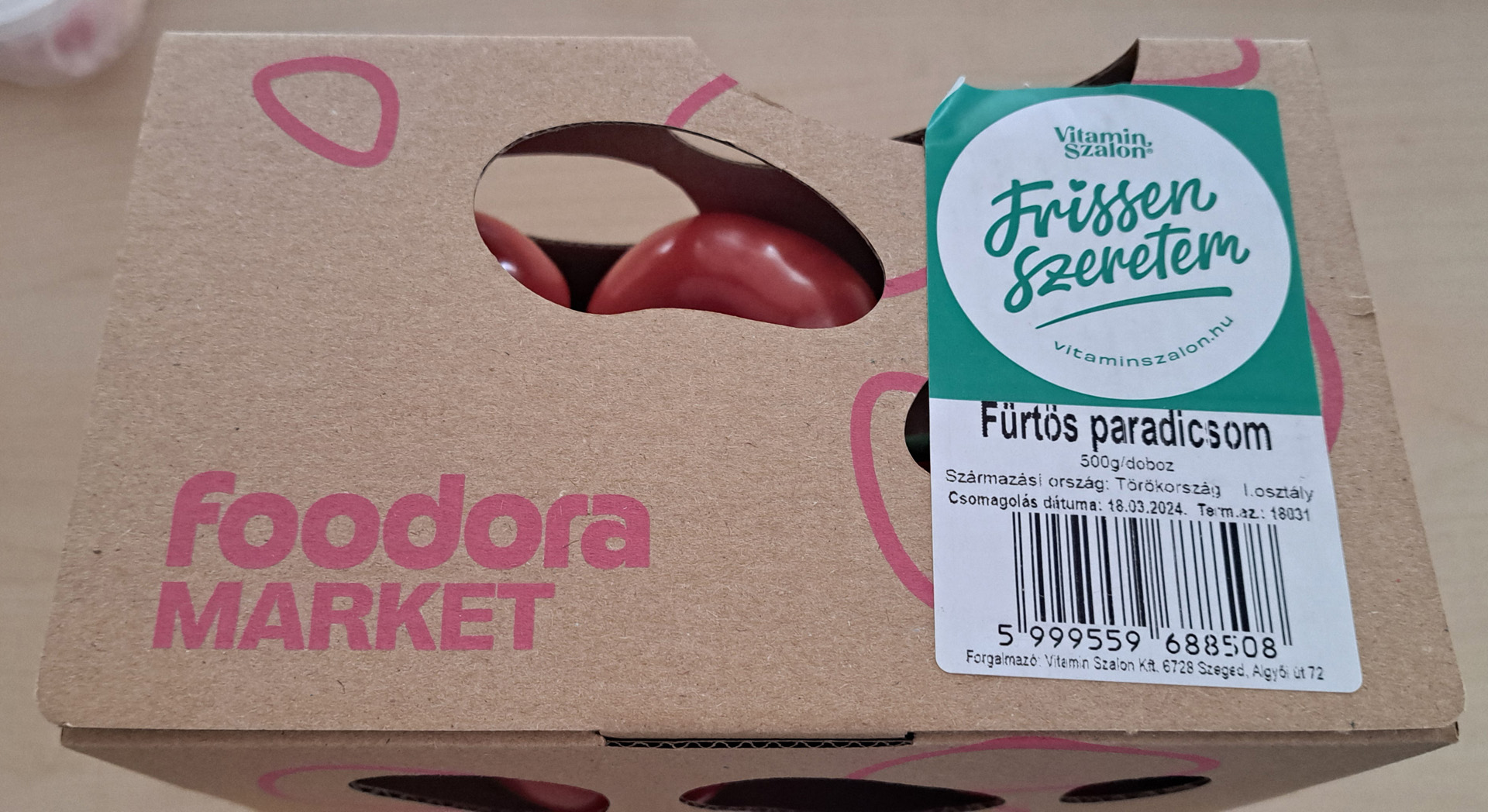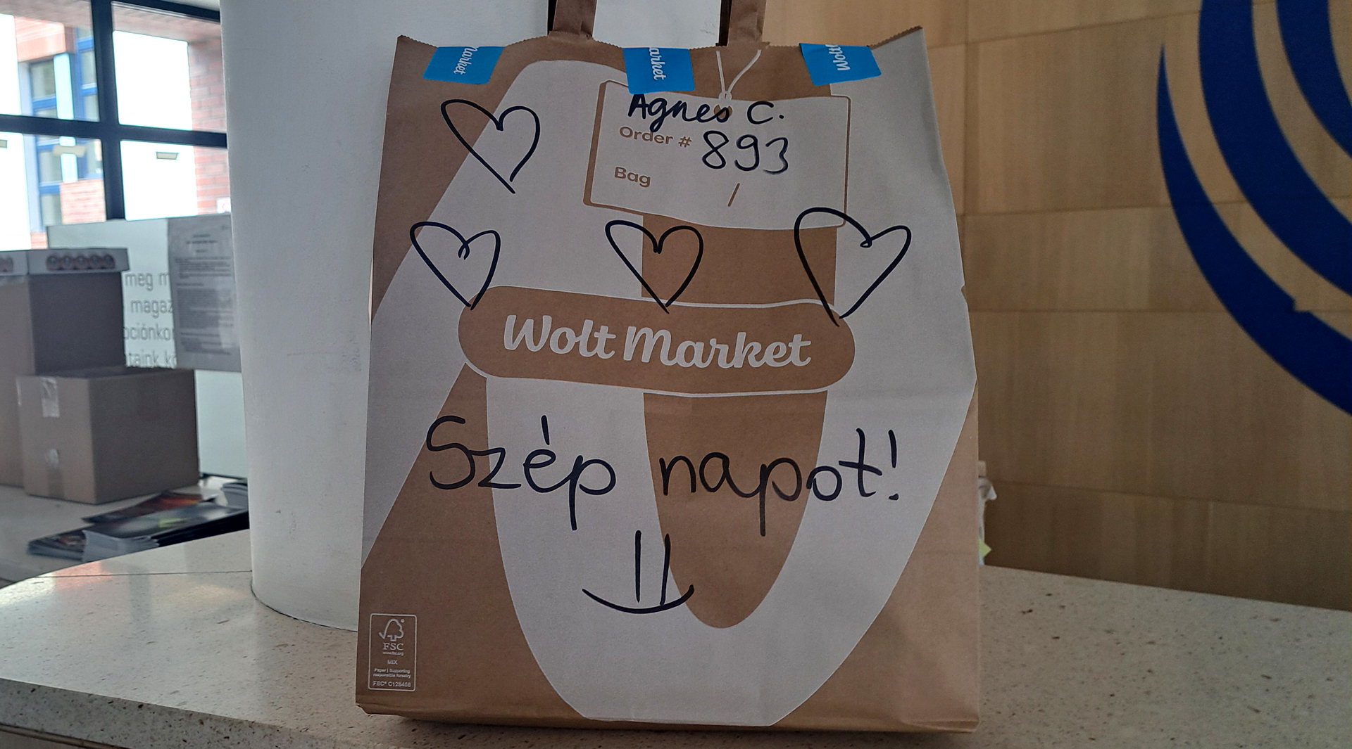 Nem vitás, hogy a Wolt átlagosan 50 perces szállítási ideje aranyat tud érni. Most már itt is lehetünk tagok, ennek ára 1.490,- Ft, ami kedvezményeket és sok helyről ingyenes szállítást jelent. Bár náluk is elérhető több üzlet, mi természetesen itt is a saját boltot, vagyis a Wolt Marketet teszteltük. A kiszállítás alapdíja 599,- Ft volt, ehhez társult 544,- Ft minimum rendelési összeg felár, valamint 160,- Ft szolgáltatási díj, furcsa módon azonban szerepelt a számlán egy -599,- Ft-os szállítási kedvezmény, amit nem értettünk, viszont örültünk neki. Volt viszont valami, amit nem csak bosszantónak, hanem egyenesen dühítőnek tartottunk. Úgy alakult, hogy két külön csomag is érkezett a cégtől. Ennek megérkezéséről pedig teljesen véletlenül szereztünk tudomást. Egyik alkalommal úgy, hogy észrevettünk egy csomagot, mely a recepción árválkodott és gyanússá vált. Másik alkalommal azért, mert lestük a telefont, majd jól megalapozott sejtéssel körülnéztünk ismét a recepción. A futár nem telefonált, a szatyorra nem írták rá a nevemet: mindkét futár nemes egyszerűséggel letette az irodaház recepciójának pultjára a csomagot anélkül, hogy a vásárlónak ezt jelezte volna és anélkül, hogy a szatyor bármilyen módon felismerhető lett volna. Mi lenne, ha egy ekkora épületben ebédidő környékén többen is szállítást várnánk a cégtől? Végigtúrnánk a név nélküli, magára hagyott szatyrokat, hogy rájöjjünk, melyik a miénk? Az már csak hab a tortán, hogy persze itt is volt a termékek között nyers hús, amely romlandó holmi… És bár az egyes árucikkek szépen, külön csomagolva kaptak helyet a csomagban, sőt még szívecskéket is rajzoltak annak külsejére, azért nem baj, hogy túl sokáig nem váratott magára a szatyor, mert a hús szavatossági idejéből már így is csak 2 nap volt sajnos hátra. Viszont legalább a paradicsom szép volt itt is.