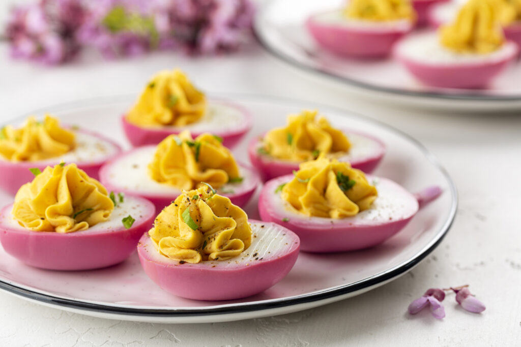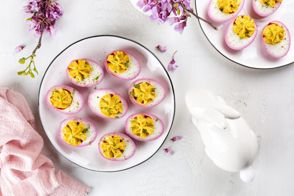 A húsvéti asztal dísze lehet: rózsaszín töltött tojások / Fotó: Olga Mazyarkina Getty Images