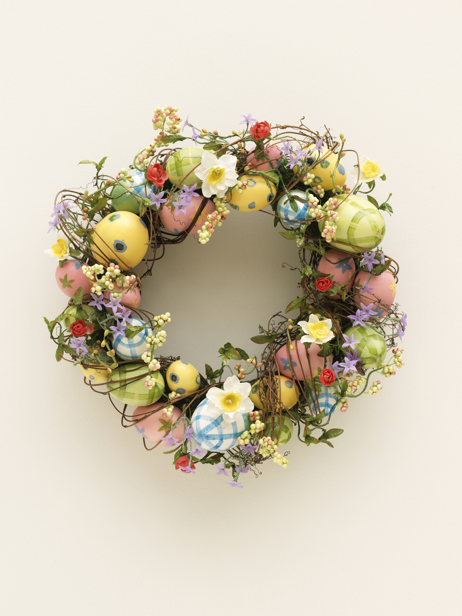 - Minél sűrűbben rakod a virágokat, leveleket és tojásokat, annál dúsabb, teljesebb hatást érhetsz el. Amíg nem vagy elégedett a végeredménnyel, és úgy érzed, vannak még betömésre váró hézagok, használd fel az apró virágokat és kisebb tojásokat.