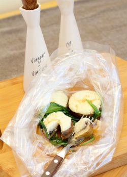Juhtúrós-medvehagymás gombafejek zacskóban sütve