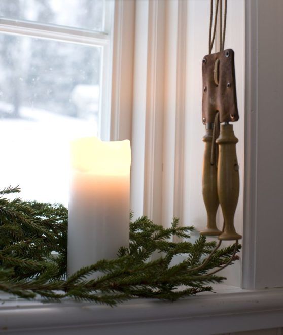 Egy natúr fehér gyertya és egy szép fenyődísz – ennél nem is kell több a karácsonyi hangulathoz.