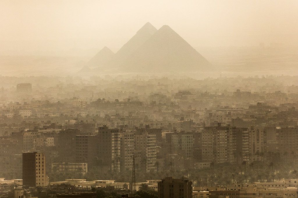 A gízai piramisok Kairó irányából. (Fotó: David Degner/Getty Images)