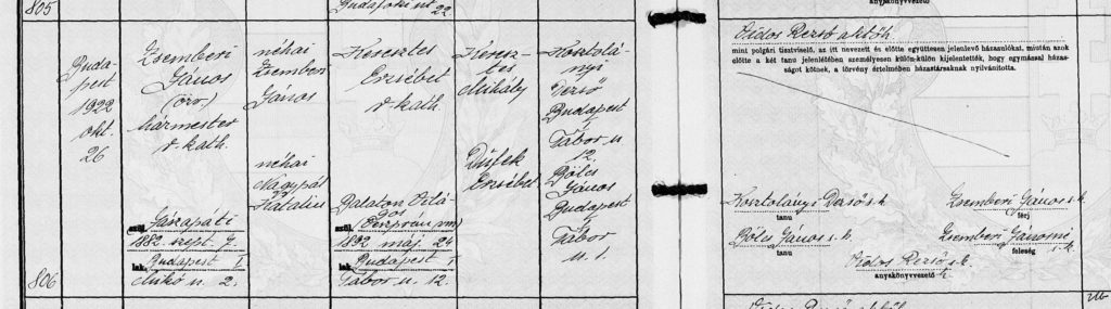 Bözsi házassági anyakönyvi kivonata 1922. október 26-áról