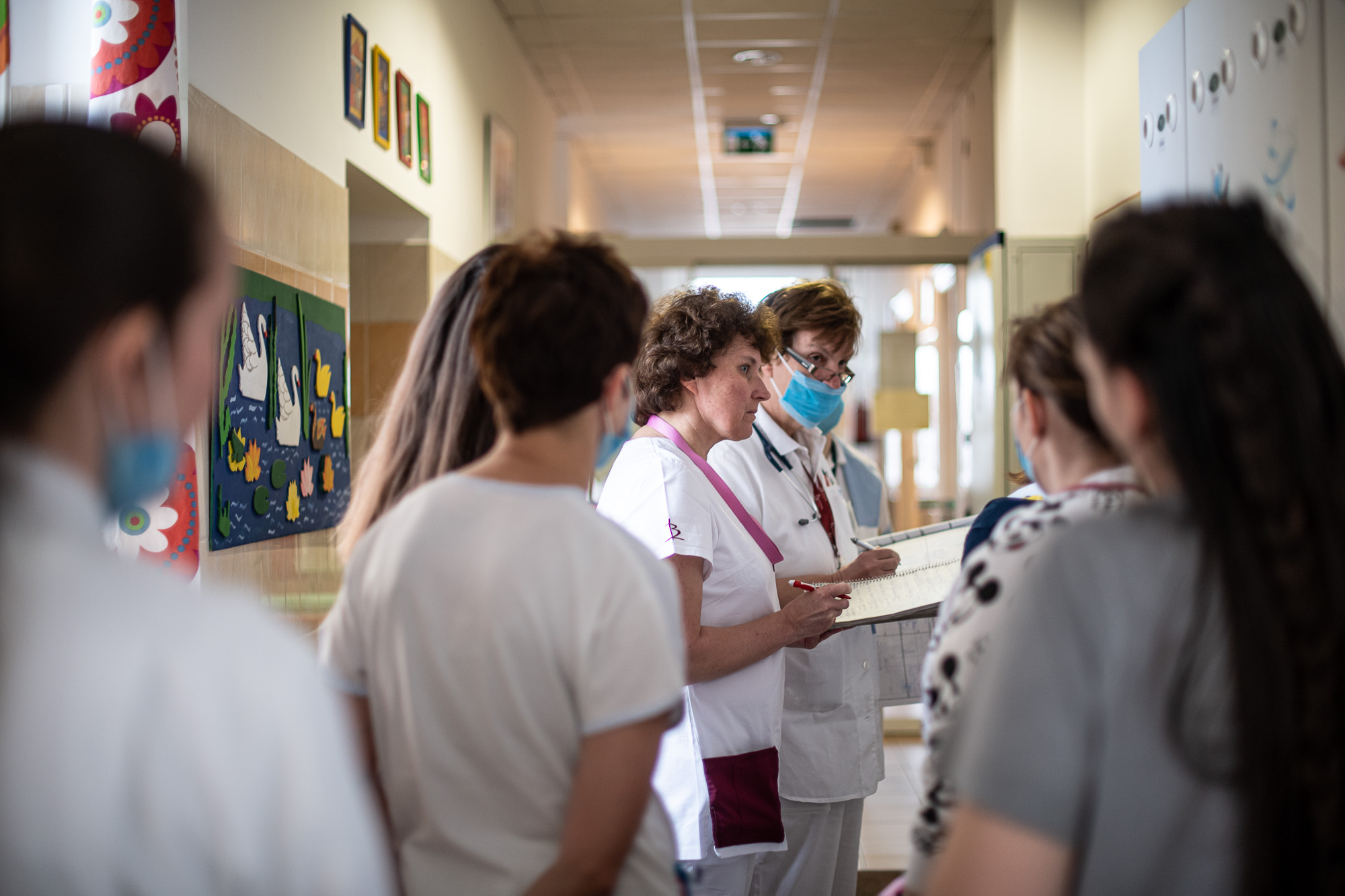 Akárhogy is, eljött az ősz, egyre több beteg érkezett, mi pedig egy kicsit úgy éreztük magunkat a kollégákkal, mintha lövészárokban lettünk volna: nem tudtuk, mikor jön a robbanás, illetve a pillanat, amikor valaki közülünk is beteg lesz. Ekkorra azonban már jól szabályozott rendszerben dolgoztunk és dolgozunk ma is, a munka minden fázisában. Felkészültek voltunk, a beöltözés, a betegek elkülönítése, a tesztek, tehát azok a helyzetek, amiket korábban nem ismertünk, az élet részei lettek őszre. Nem jósolgattunk, igyekeztünk az adott napban élni és tenni a dolgunkat. Védőfelszereléssel mindig jól elláttak, nem volt rossz tapasztalatunk közvetlenül ezen a téren. Kis, egyházi gyermekkórház vagyunk, nem mi vagyunk a frontvonalban. Külön műszakokkal, home office-szal megoldottuk azt is, hogy ugyanazon teamek tagjai ne találkozzanak egymással, ami fantasztikus eredmény: ha ugye valaki megbetegszik vagy pozitív lesz a tesztje, a közvetlen kontaktjait is otthon kell tartani. Ha itt ilyesmi történik, kontaktok híján csak az adott személy megy karanténba.