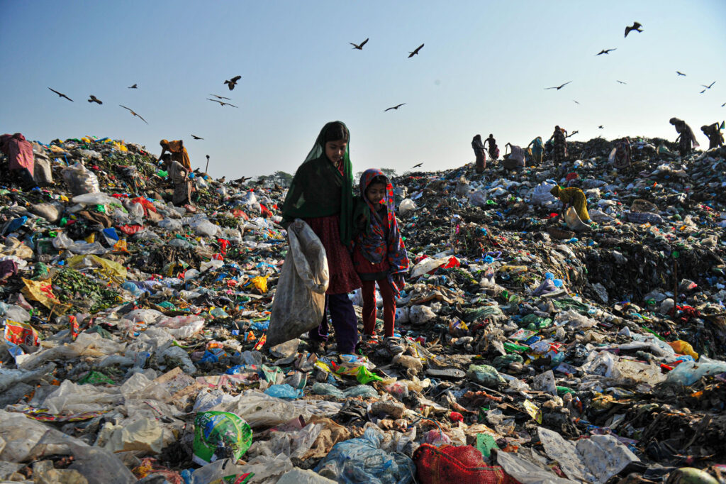 Munkások dolgoznak egy bangladeshi szeméttelepen (Fotó: Md Rafayat Haque Khan/ Eyepix Group/Future Publishing via Getty Images)