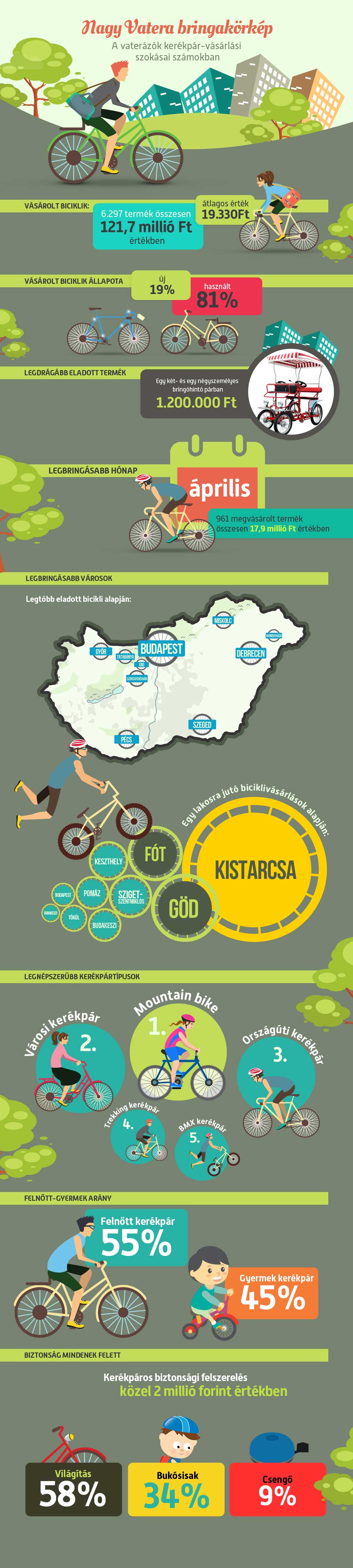 A Vatera adatelemzéséből ehhez hozzáadva az is kiderül, hogy 36 százalékban hegyi kerékpárt választunk. A „legbringásabb” magyar város címe pedig Budapesté, öt év alatt 8793 darab eladott kerékpárral. A főváros belső kerületeiben húsz év alatt tizenegyszeresére nőtt a kerékpáros forgalom.
