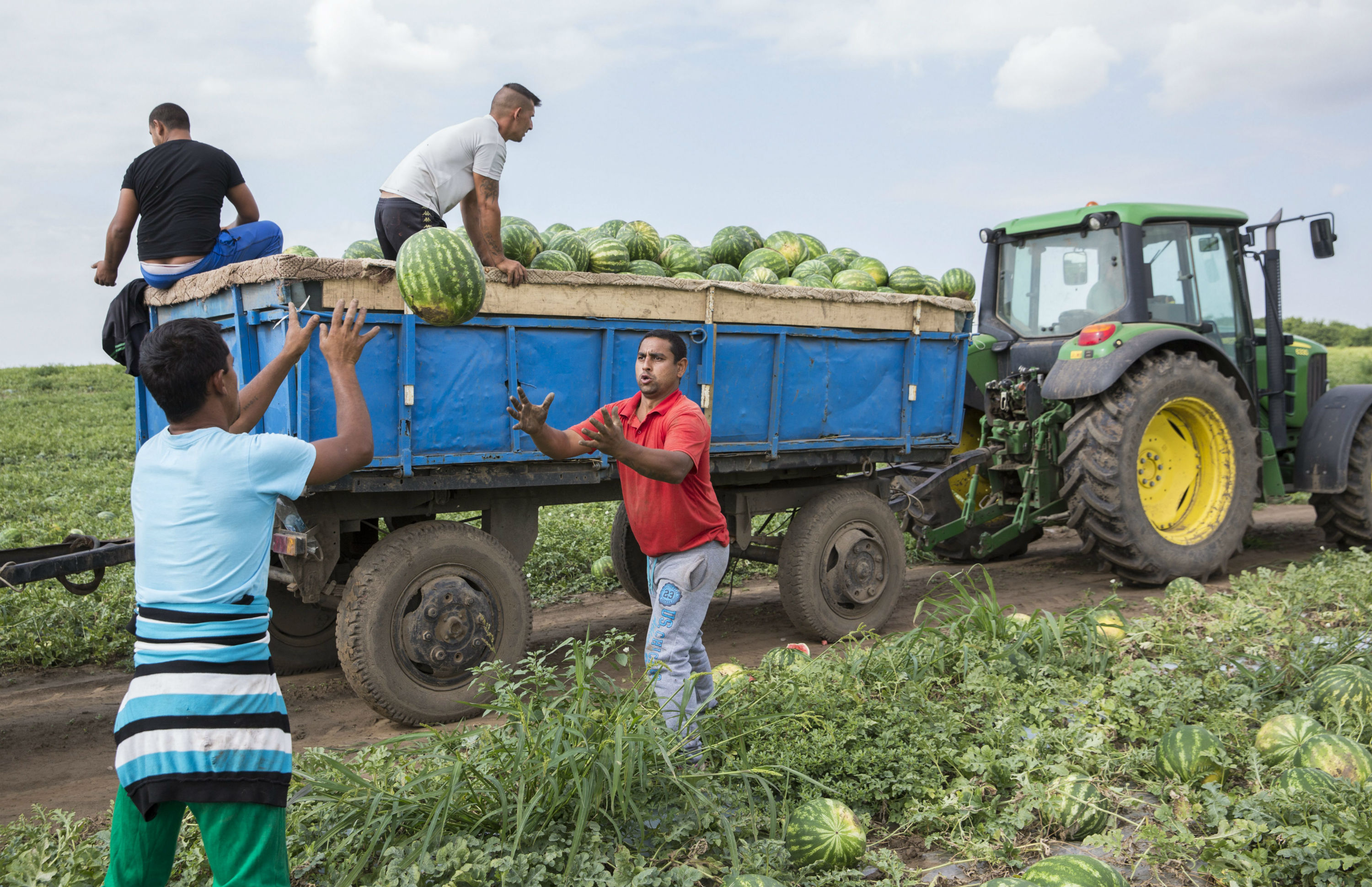 Szedik a dinnyét Békés megyében. Forrás: MTI