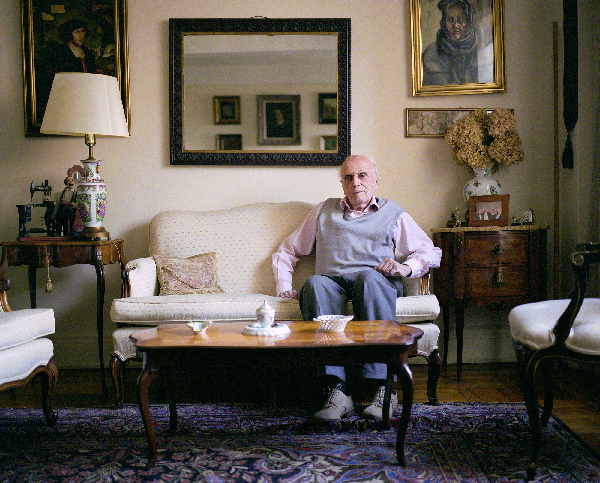 A fotóművész természetesen fotózott is, ám (szintén nagyon helyesen) elkerülte az ilyenkor jellemző kliséket: nincs a ráncokat erősítő kontraszt, nincsenek fekete-fehér szuperközeliek, nincs művi, a tekintetbe történet és érzelmeket erőltető szemfény. Egyszerű képek ezek idős emberekről, jellegzetes lakásrészletekkel, mindenki „jól van”, éli az amerikai nyugdíjasok a magyar viszonyokhoz képest gondtalan életét.