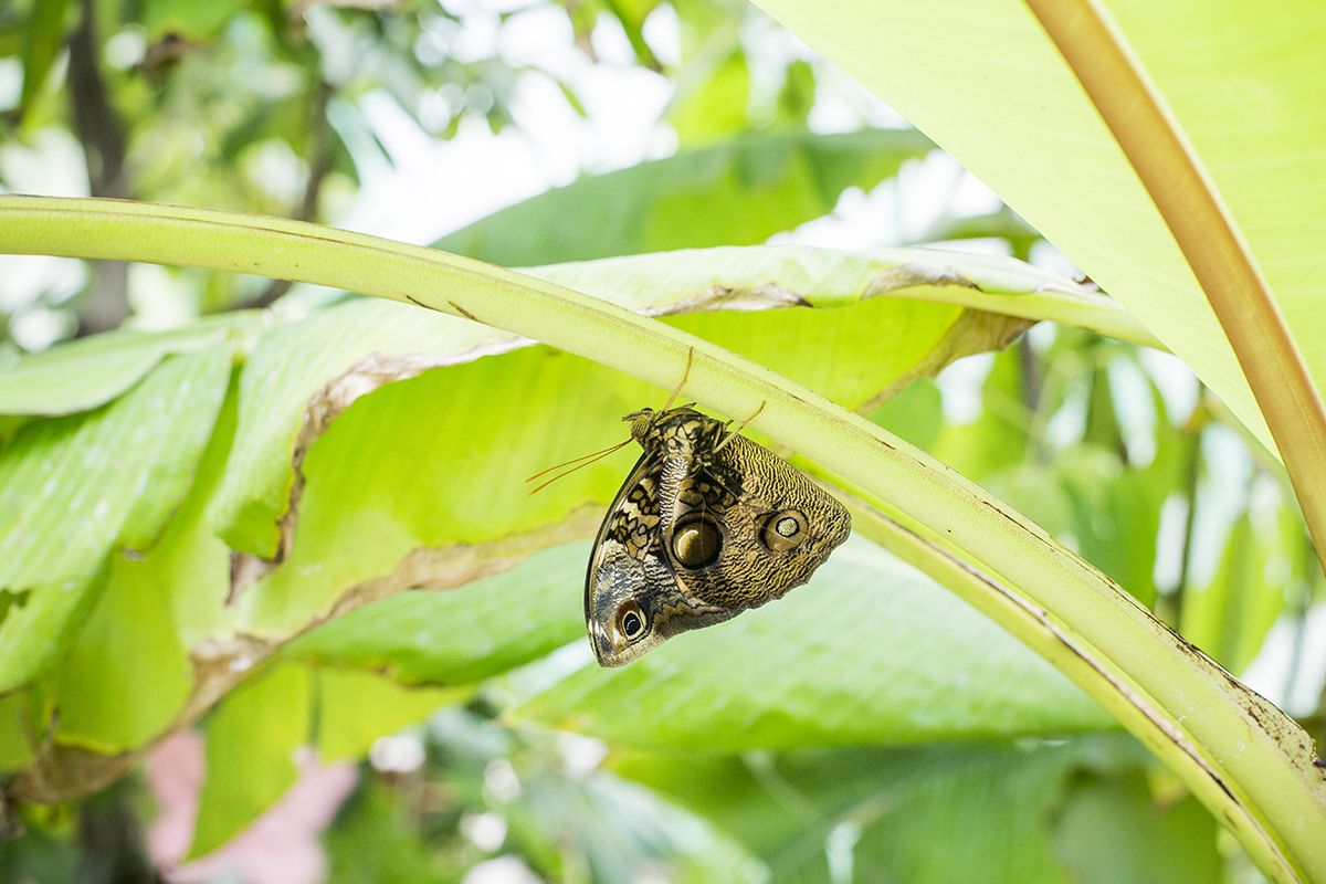 Van, hogy banánlevélen pihenve látjuk meg a lepkét…