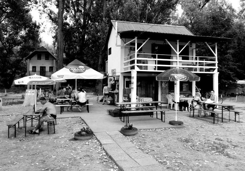 Sznobéria? Nem pálya errefelé, fellengzősködésnek helye nincs, a történet egyszerű: lemész a Tisza-partra, ledobod a törölköződ a homokba, úszol egyet a folyóban, aztán felveszed a papucsod, irányba veszed a büfét, és iszol egy fröccsöt. Kétszázért.