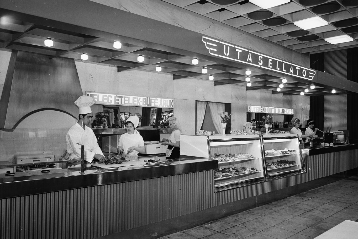 „Szendvics rántott hússal, fasírozottal, vagy szalámival, pici sajttal és csemege uborkával. A zsemle mindig rágós volt, szikkadt vagy elázott. Csak az ette, aki tényleg nagyon éhes volt” – emlékszik vissza édesanyám a Fortepan utasellátós képei láttán. „Volt még ott csoki és nápolyi, és úgynevezett utasellátó szelet, amit celofánba csomagoltak, és ragadt, mint a nyavalya. De volt itt sör, fröccs, kommersz pálinka és persze narancs-és citromaromás Bambi. Az utasellátókat mindig a pályaudvarokon és a legforgalmasabb peronokon üzemeltették.” Ti emlékeztek még?