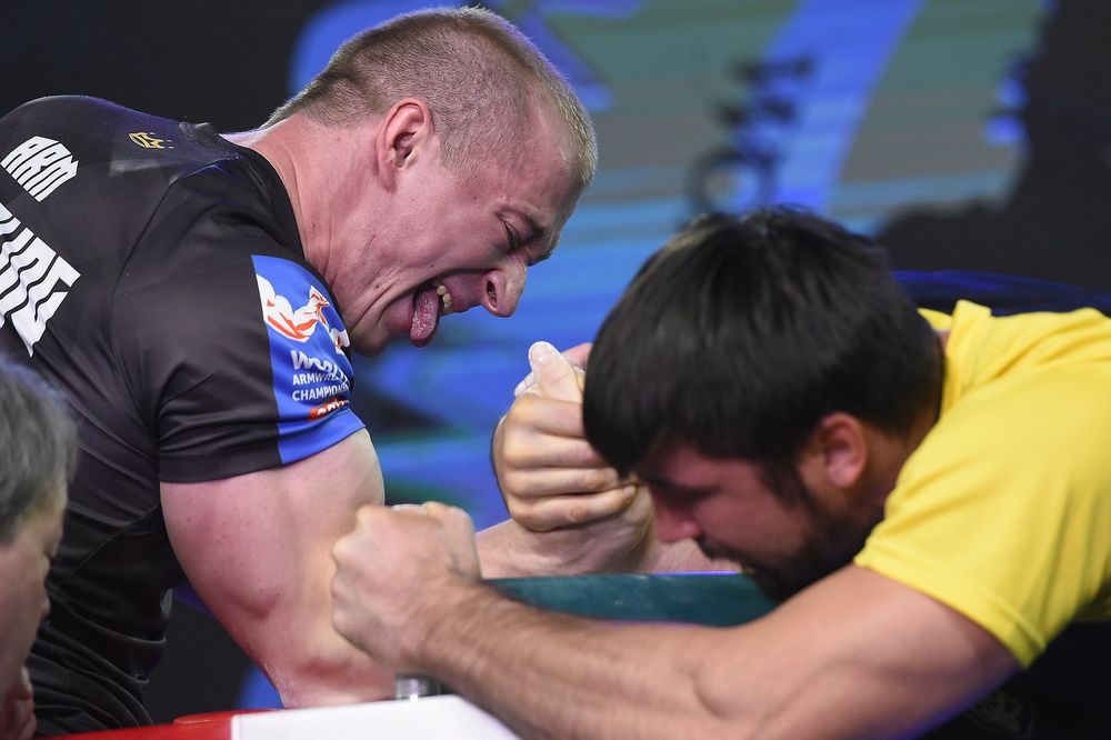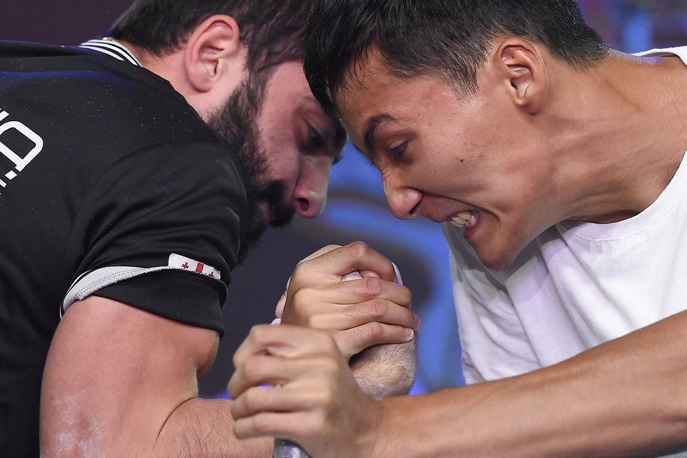 Az orosz Artur Makarov (b) és az örmény Emil Amirsadjan szkander-világbajnokság férfi 70 kilogrammos súlycsoportjának döntőjében (MTI-fotó: Kovács Tamás)