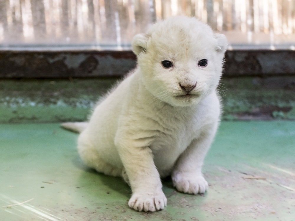 A fehér oroszlánkölyök (Panthera leo krugeri, fotó: Szegedi Vadaspark/Endrédy Lajos)
