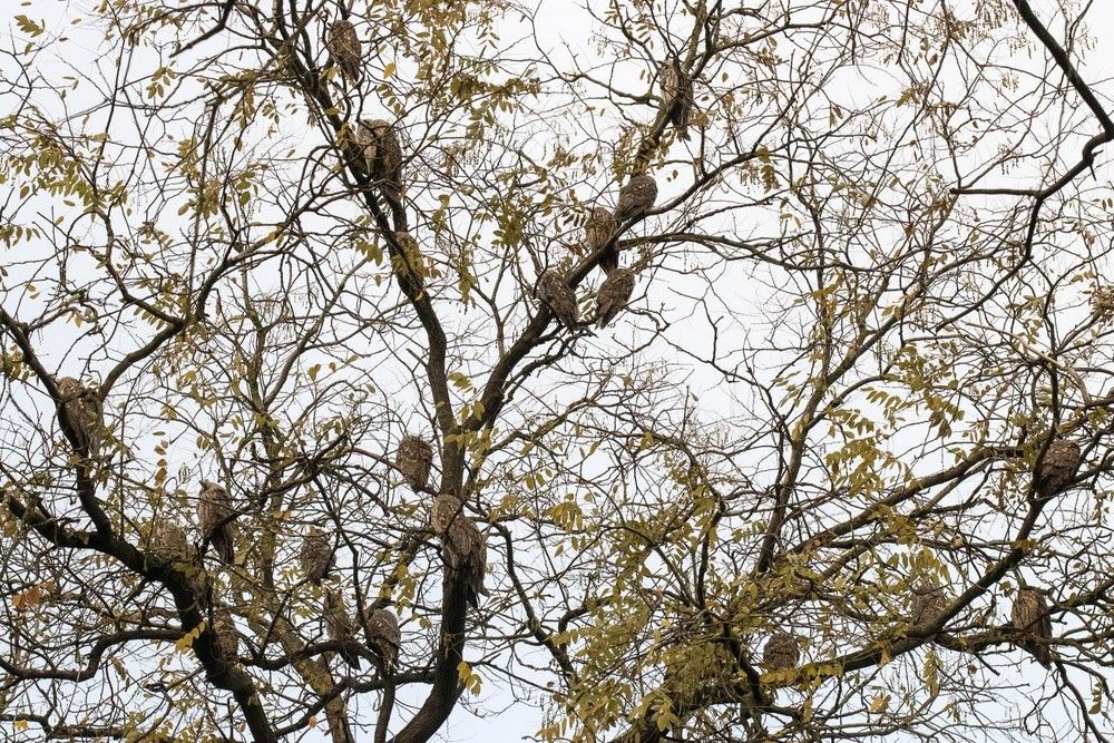 Idén is megjelentek az erdei fülesbaglyok a városi parkokban, adta hírül a Népszava.hu. A hortobágyi Petőfi téren jelenleg 44 bagoly tölti nappalait.