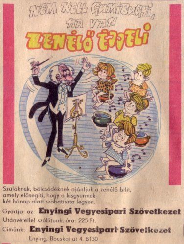 A vasfüggöny mögött rengeteg hajmeresztő és a szürrealitás csúcsait döntögető ötlet kapott teret a megvalósításhoz, és ebből a gyerekek, mint célcsoport sem maradhattak ki. Az Enyingi Vegyesipari Szövetkezet jóvoltából gyerekként nem a fülünk csengett, ha ráültünk a bilire, és elvégeztük kisebb-nagyobb dolgunkat, hanem egyenesen a biliből érkeztek a dallamok.