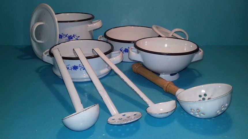 A retro vájling, a bádog bögre és a zománcozott tésztaszűrő valóságos felüdülés volt a szemnek és a léleknek a sok műanyag után. Bármi, ami megtörte a műanyag egyeduralmát igazi kultikus tárggyá vált. A fehér színű fém tésztaszűrők olyan időt állóra sikeredtek, hogy sok háztartásban még ma is ott lógnak a konyha falán.