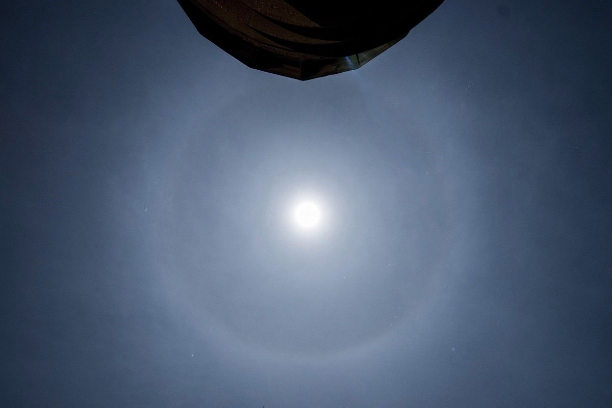 Sóki Tamás, az MTI fotósa nagyot ment hétfő éjjel, amikor felmászott a Mecsek legmagasabb csúcsára, a Tubesre. Elsőként elkapta a Hold körüli halót. A haló elnevezésű fényjelenség a 8-12 kilométer magasban elhelyezkedő felhőkben lévő jégkristályokon visszaverődött és megtört fénysugarak okozzák.