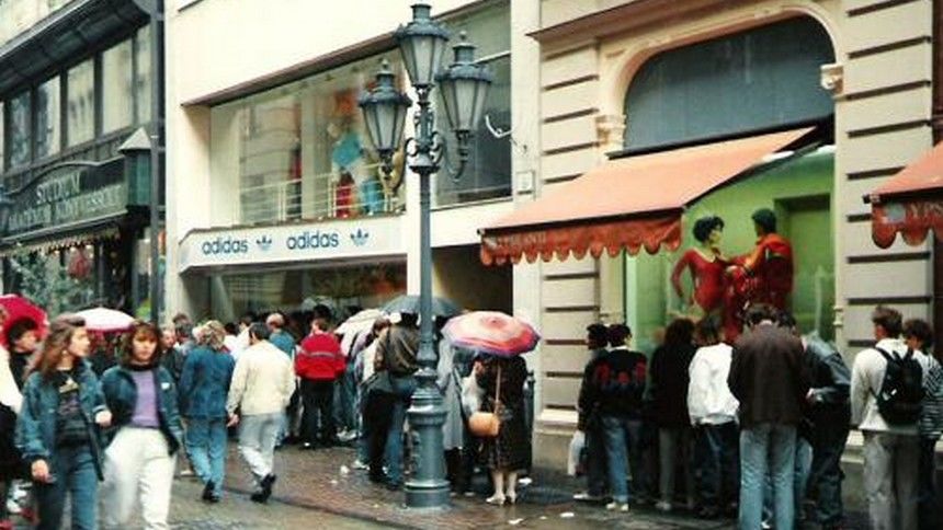 A rendszerváltás előtt az Adidas olyan nagyon menő volt, hogy a Váci utcában kígyózó sorok álltak a bejárat előtt, hogy aztán a szerencsés vásárlók irigykedő pillantások kereszttüzében végig lejthessenek a 3 csíkos melegítőben a körúton.