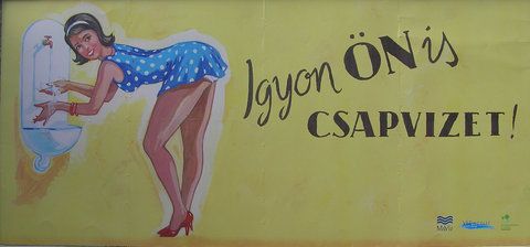 A csapvíz és a falikút preferálását volt hivatott képviselni ez a plakát is, amelyen egy igen alacsonyan elhelyezett kút és egy miniszoknyás nő kapta a főszerepet. Ha nem is így ittuk, de annak idején valóban ilyen falikút díszelgett a legtöbb konyhában és a köztereken is, ezek hoztak enyhülést a forró nyári napokon.