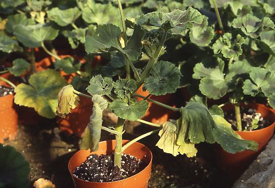 Mint minden szabadban lévő növénynél, figyeljünk arra, hogy öntözésnél a leveleket, virágokat ne érje víz. Az álló muskátli és az angol muskátli levele szőrös, amin megmaradnak a vízcseppek. A vízcseppekben megtelepszenek és elszaporodnak a kórokozó gombák. Szintén rossz hatással van az öntözővíz a szirmokra, ez esetben is barnulást és pusztulást okoz.