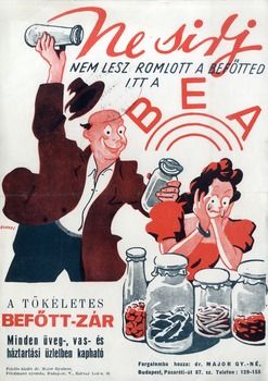 Az átkosban sem lehetett panaszunk a reklámok és a hirdetések egyhangúságára: a propaganda plakátok mellett a vicces vagy a viccesnek szánt, az óvatosságra intő és az egészségünket óvó hirdetéseken néha jobban szórakozhattunk, mint a Hahota magazinon. Ez a korabeli retró plakát például egyből megoldja a Kádár-korszak háziasszonyának egyik legégetőbb problémáját, és meglebegtette a könnyeket eltörölni képes tökéletesen illeszkedő és záró befőtt-zárat. A befőtt-zár egy csapásra megszüntette a konyhai gondokat, a csalamádé és a befőttek sem romlottak meg, így mindenki boldog, vidám és elégedett lehetett.