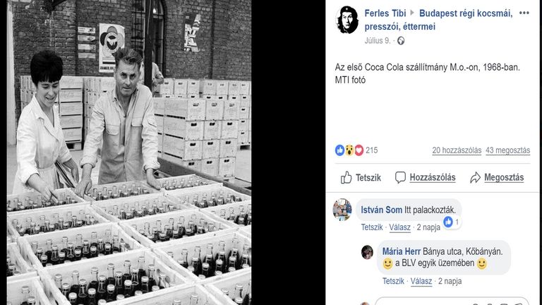 A Budapest régi presszói, kocsmái Facebook-csoportban jelent meg a fotó, amelyen az első szállítmány hazai Coca-Cola látható. Az már a kommentekből derül ki az 1968-as fotóról, hogy a kőbányai sörgyár üzemében készült, hiszen itt palackozták a fantasztikus nyugati újdonságot.